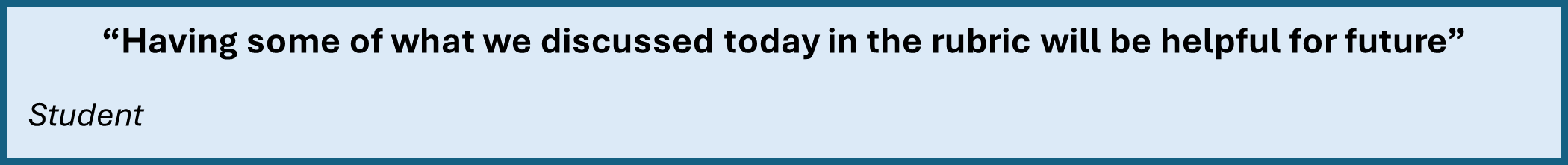 SC students engaged in a preliminary task to annotate an upcoming assessment’s rubric; students were engaged and noted their feelings and suggestions for improvements, giving insights into how students perceive rubrics purely as a summative tool.