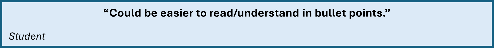 Students highlighted four main themes: over-generalisation, readability, clarity of grade boundaries, and the need for further examples. These align with literature suggesting that students may struggle to interpret vague rubric language, particularly when classroom discussion is absent (Taylor, Kisby & Reedy, 2024). This reinforces arguments that rubrics should not just sit on learning platforms, they need further classroom discussion and integration to enhance transparency, student engagement, and understanding of assessment expectations (Francis, 2018; Jones et al., 2017).