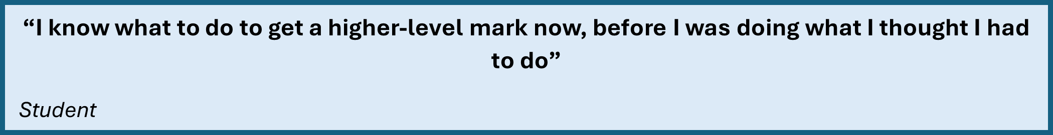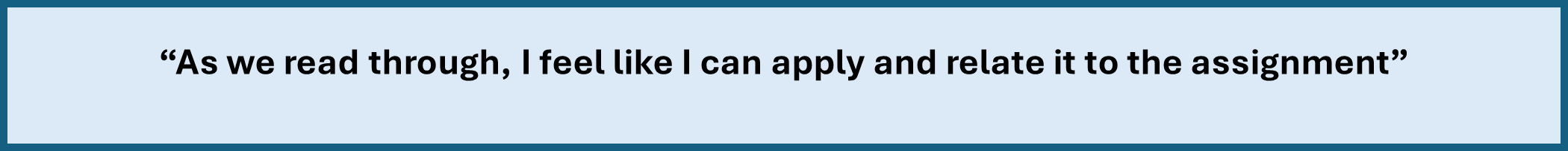 By the end of Task Two, students described a clear change in their approach to writing the assignment, expressing their intention to use the rubric as an opportunity to formally check their work.  Students expressed that they had a clearer understanding on what contributed to higher-level marks, something that they were unaware of prior to the rubric task. This reflects an increase in assessment literacy and academic confidence. Where Task One highlighted uncertainty, Task Two showed the opposite and displayed that a structured discussion, using the rubric as a learning tool, allowed students to move from not fully understanding expectations, to being able to articulate how they can influence their assessment grade.